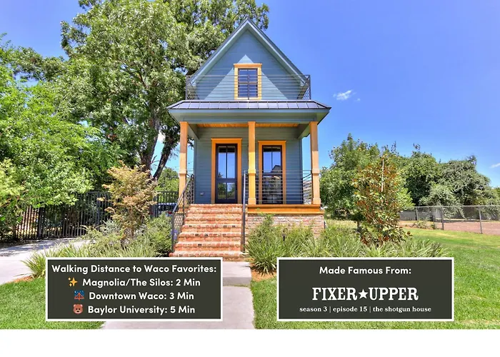 Das Shotgun House From Fixer Upper - 800 5-Stars - Steps To Silos, Bu, & Downtown ist ein wahres Juwel im Herzen von Waco. Dieses charmante Haus, inspiriert von der beliebten TV-Serie, bietet eine einladende Atmosphäre und eine exquisite Einrichtung, die sowohl Stil als auch Komfort vereint. Perfekt für Paare und Familien, die eine historische Umgebung mit modernem Komfort suchen.